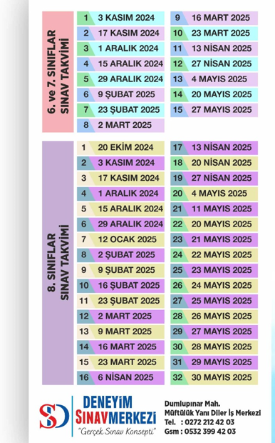 AFYONKARAHİSAR SINAV EĞİTİM KURUMLARI 2024 & 2025 EĞİTİM ÖĞRETİM YILI DENEME TAKVİMİ